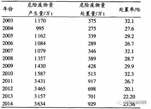 表1:2003—2014年中國工業危險廢物處置情況