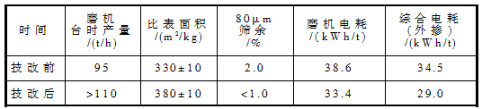 表3 技改前后粉磨系統生產技術指標月平均值