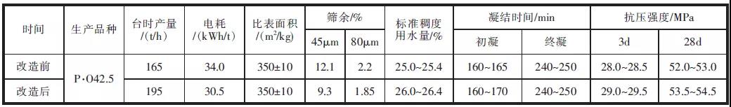 表3 改造前后各項指標及水泥性能